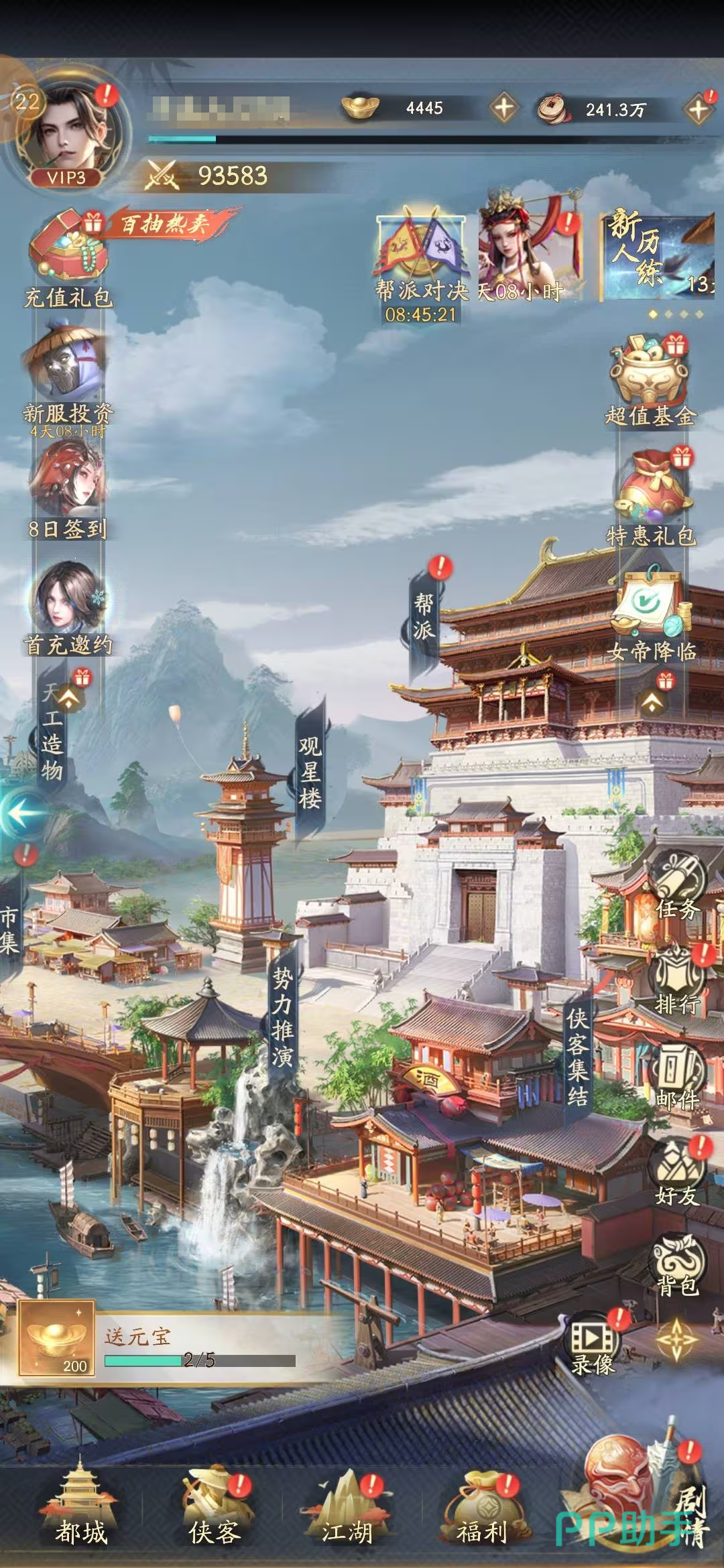 有一些任务是新手们每天都要去完成的,第一个就是主线和精英副本,优先通关主线就能解锁更多新的功能,比如观星楼,神武阁之类的,能更全面的找到游戏的乐趣所在;显示活动也及得参与,有很大几率可拿到SSR的碎片,以及限定武器;帮派任务也要记得做,可以有心去兑换心仪的侠客的碎片。