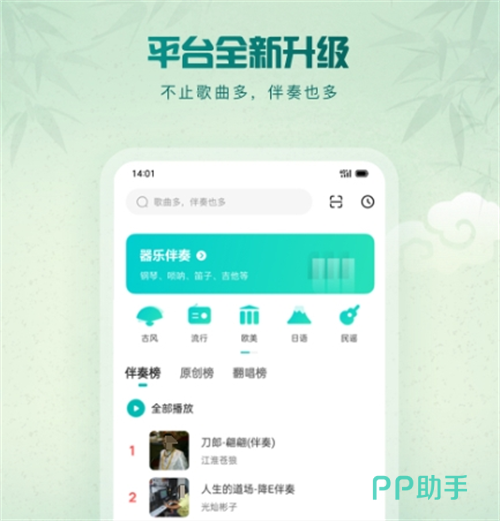 对于音乐爱好者来说,这款软件想必并不陌生。它涵盖了欧美、流行等多种不同风格,海量原创歌曲汇聚供大家自由播放,此外像伴奏等功能的解锁,更是让小伙伴们可去随时进行收听与保存。