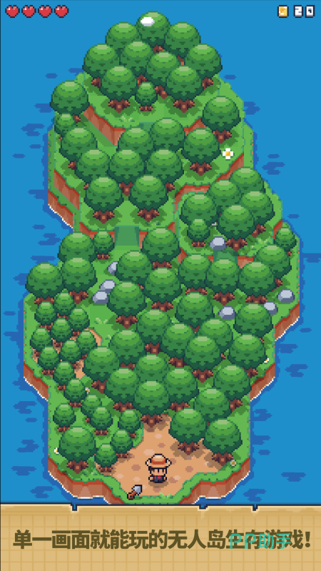 玩家将扮演一位被潮水送上神秘孤岛的旅人,从森林边缘开始,一步步深入未知地带,解锁岛屿背后隐藏的秘密。游戏采用单一界面布局,操作极简却逻辑清晰,无需频繁切换场景也能感受到紧凑节奏带来的探索乐趣。收集、合成、升级一应俱全,从砍树挖矿到强化心脏槽,每一步成长都贴近生存主题。角色动作流畅,场景过渡自然,在短时间内也能体验到构建家园和探险求生的双重满足感。