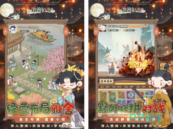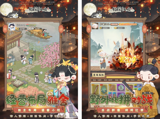 这款以中国诗词文化为题材的q版画面手游,可让玩家化身为游戏中的各种可爱角色,仿佛穿越到了古代一样,每个画面都有精美的设计。为了发挥每个角色,在诗词歌赋这方面的实力,可通过参与的科举,与其他的玩家进行较量,看看谁可称为排行中比较厉害的存在。同时还融入了经营布局以及野外比拼对战的玩法。