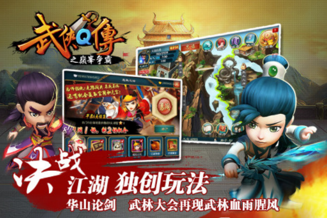 这款是以武侠题材所设置的手游,依旧采用的是q版的人物进行设计,无论是具备的3d画质,还是实时战斗等,都能帮助大家演绎武林争霸时,所具备的紧张刺激感。独创了很多的玩法,无论是参与的武林大会还是华山论剑,都能帮助大家置身于武林所出现的血雨腥风,支持与全球很多的英雄一较高下,进行跨服战斗。