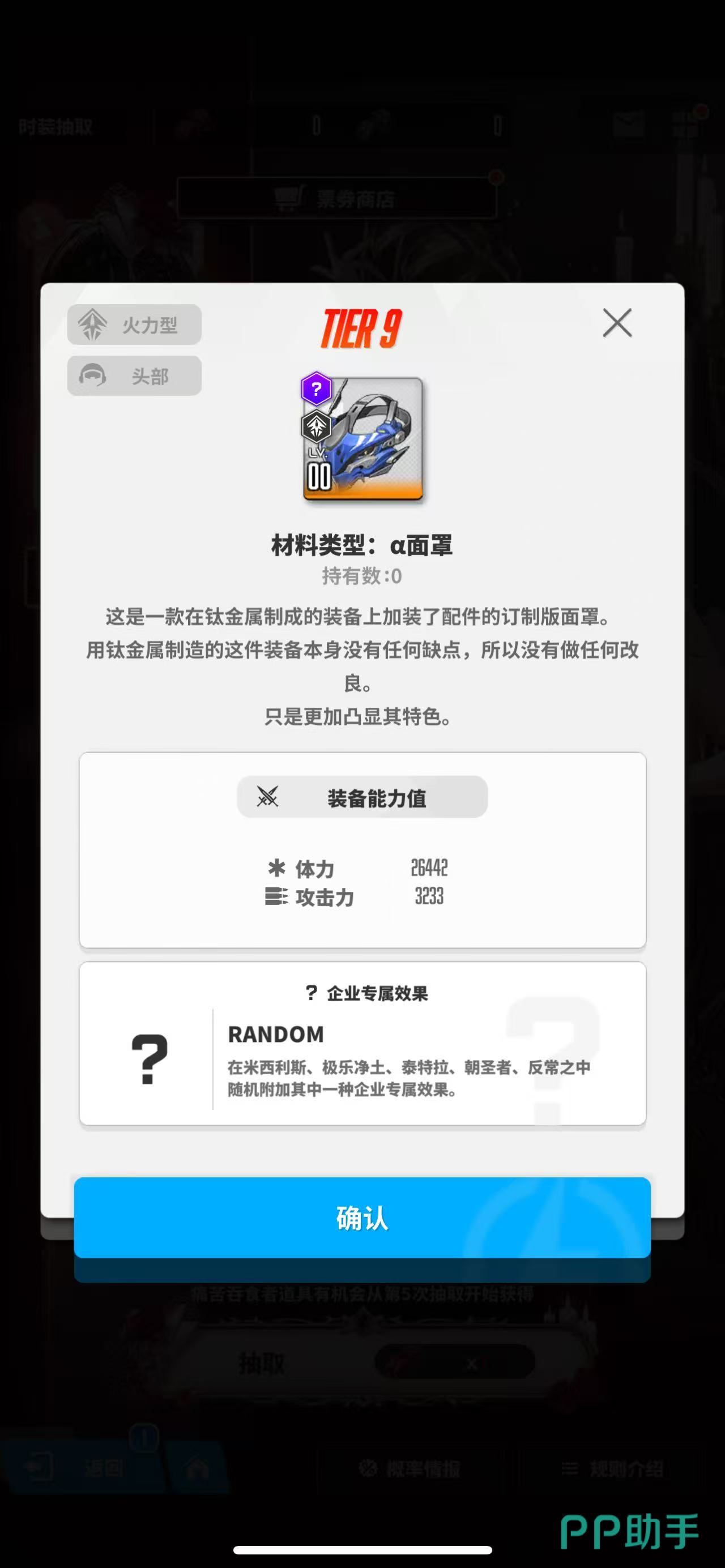 其实α套装的全名叫作材料类型:α,一共分为四个部件。先来看看面罩,这件装备作为火力型装备,可以直接让你获得多达三千多点的攻击力,这对输出类角色来说非常夸张,甚至能一发打出高额爆发伤害。然后体力值也是高达两万六千多,同样是防御力惊人。