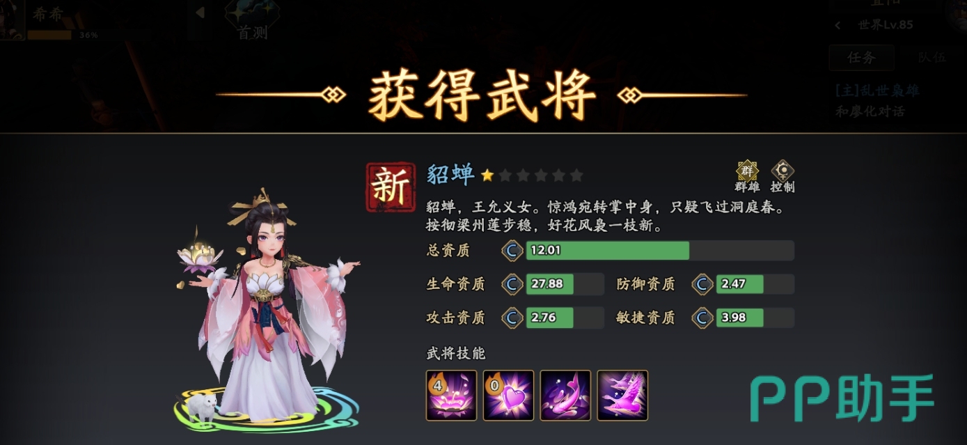 陈宫【迟滞】→【冰冻】限制敌方行动;貂蝉【美人心】概率控制敌方主C,双重控场打断敌方输出节奏。