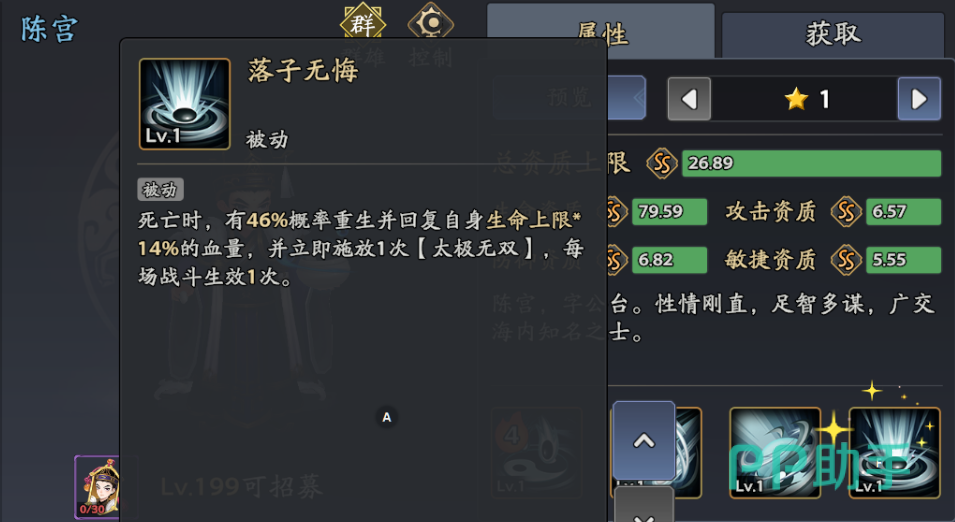 加点优先级:太极无双(大招)→背却苍天(被动1)→落子无悔(被动2)→黑子白棋(主动技)