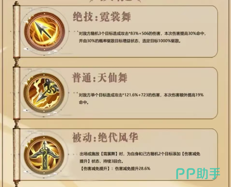 孙尚香的定位是一个群体输出能力,她的技能可以对敌方造成全体火属性伤害,同时还能消除敌方的各种buff,这个技能可以有效针对敌方的buff队伍,而且还能提高我方阵容的输出能力,技能加点方面基本上主加大招即可,小技能副加,普通攻击可以直接舍弃。