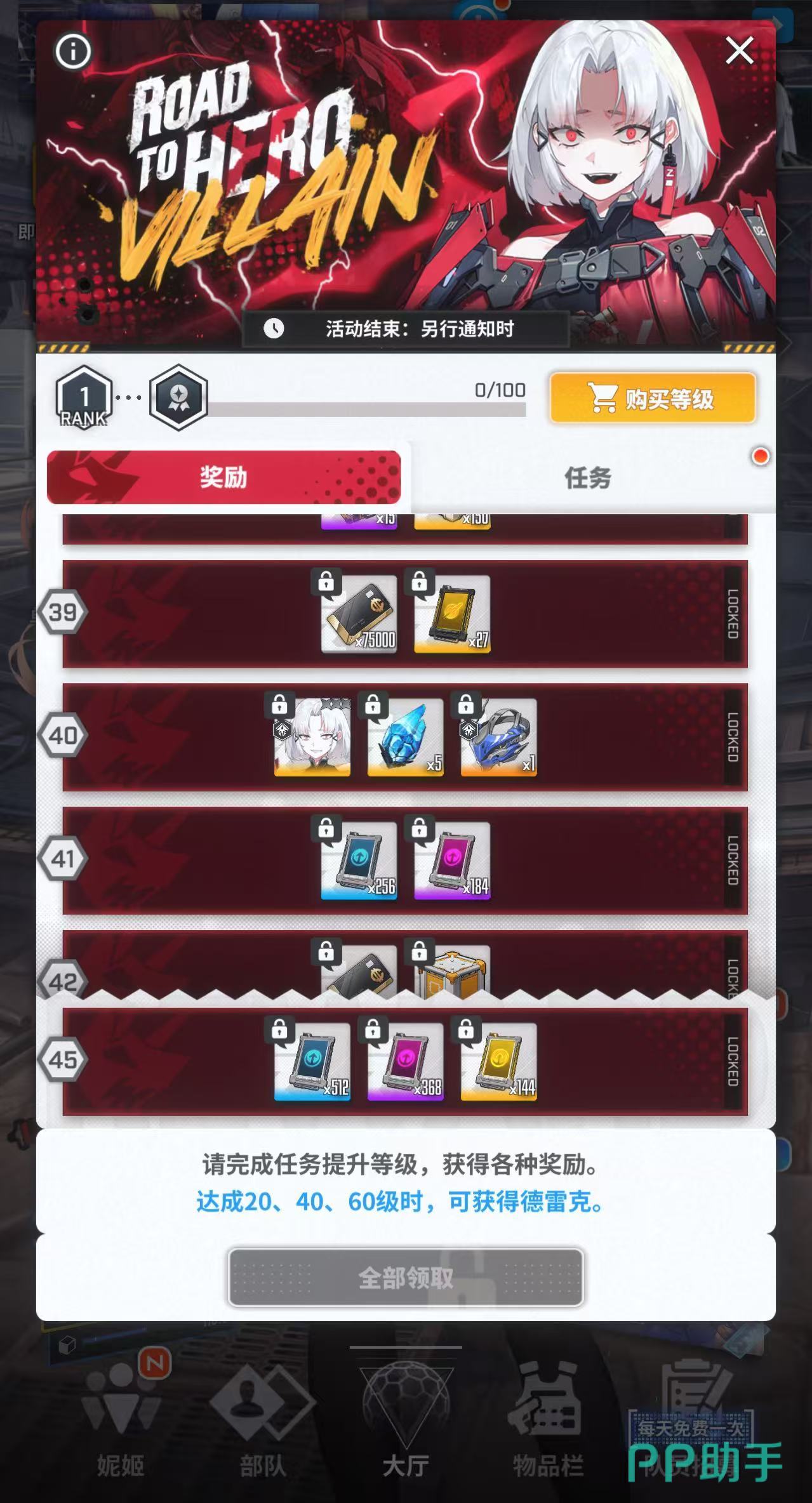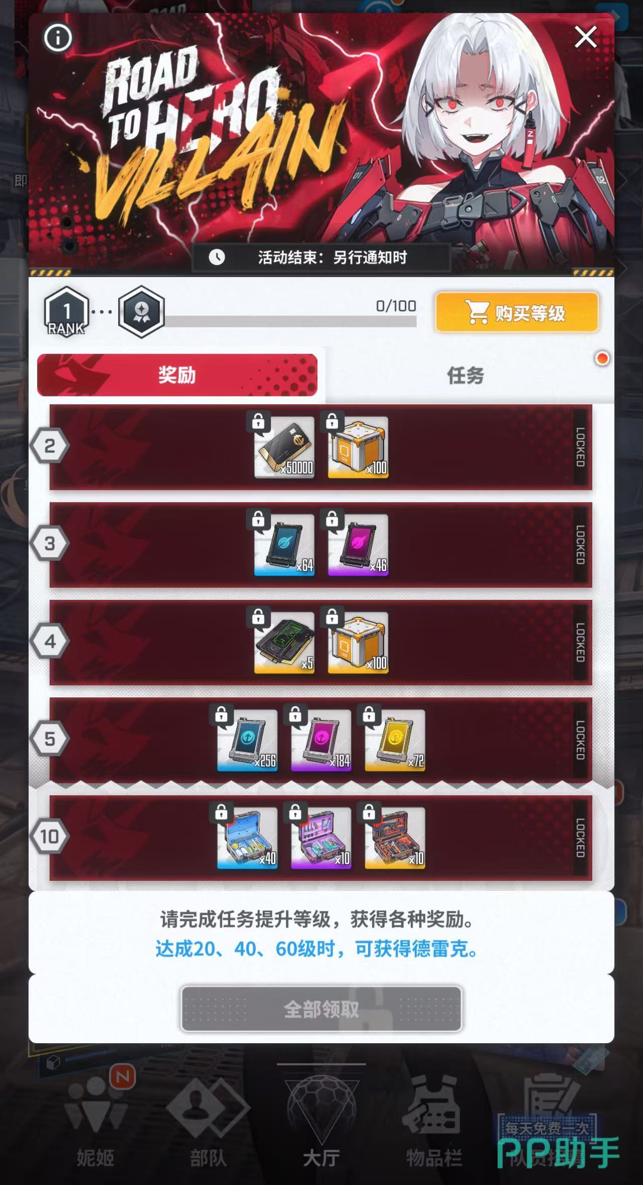 大家想要获得这个角色的话,那只需要参加road to villan的活动任务。其实这更像是一个战令类型的任务,可以通过做任务的方式获得经验,但等级提升上去之后就可以领取每个等级所能获取的奖励。