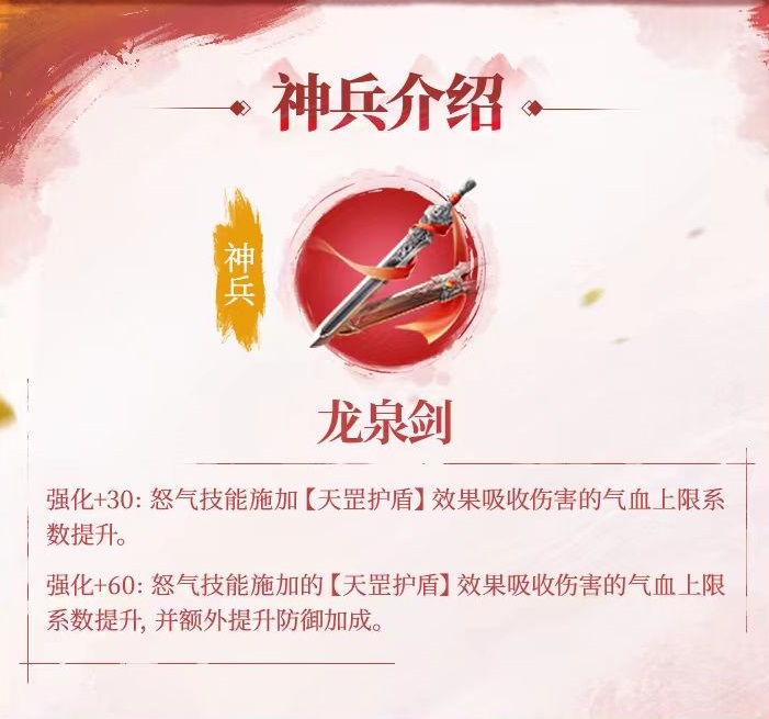 李星云所具有的神兵是龙泉剑,该神兵的效果是怒气技能施加天罡护盾效果吸收伤害的气血上限系数提升,并且额外提升防御加成。在玉佩选择方面,小编比较推荐究极敏捷、究极打击、究极护盾和究极金刚这几个,这些技能可以提供身法加成,提供真实伤害以及强化护盾效果。