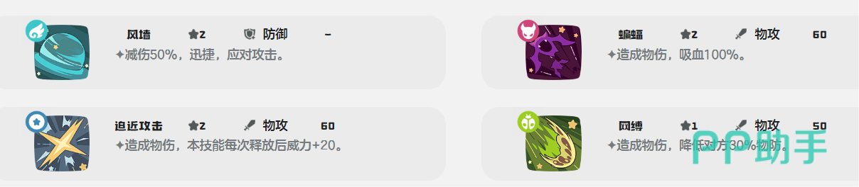 之后还需要学习迅捷,可以减少50%受到的伤害,另外获得更多迅捷值。可以避免被对方一套爆发伤害带走,自己也可以迅速发起反攻!然后也能学习一下蝙蝠,造成高额物理伤害的同时,又可以快速恢复血量,让自己的生存能力进一步提升!这套技能搭配起来后,进可攻退可守。主打的就是灵活多变。