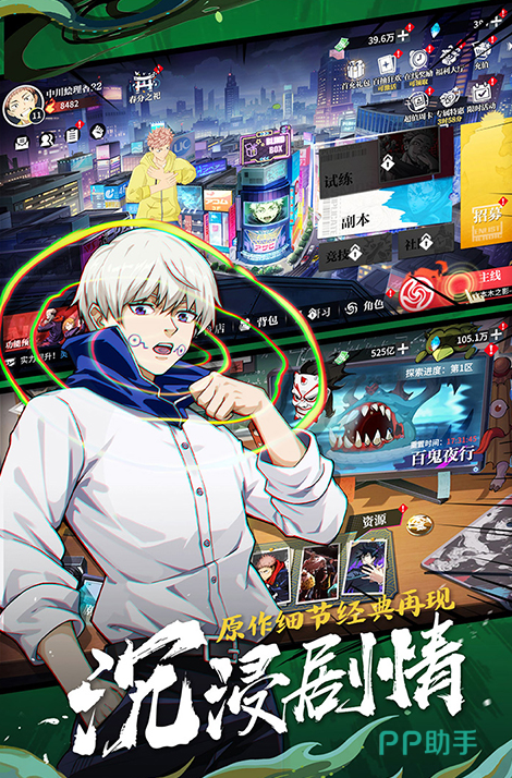 在这里玩家将开启一场充满奇幻与热血的冒险之旅。游戏巧妙融合了咒术回战的神秘咒力与阴阳师的妖灵羁绊,让经典角色跨越次元并肩作战。玩家可以化身阴阳师,召唤咒术回战中的虎杖悠仁、五条悟等高人气角色,组建专属战队挑战妖邪;也能收集式神卡牌,体验回合制策略对决的智慧博弈。游戏特别设计了跨次元剧情副本,重现咒术回战经典战斗场景,配合全屏特效技能释放,带来沉浸式视听享受。