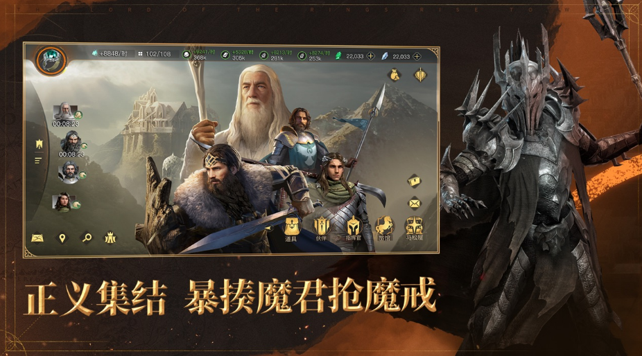 这是一款以经典IP为灵感的策略冒险手游,它将中土世界的奇幻史诗与策略经营巧妙融合。在这里,玩家将化身领主,在魔戒重现的纷争时代中建造城堡、招募军队,与甘道夫、阿拉贡等传奇英雄并肩作战。游戏最大的魅力在于自由搭配指挥官与兵种,步兵方阵能筑起钢铁防线,骑兵可撕开敌军阵型,而精灵射手的箭雨则能扭转战局。玩家既能在山川起伏的立体地图上灵活行军,也能在秘境中偶遇咕噜或挑战浴火炎魔,感受原著中的奇遇与危机。