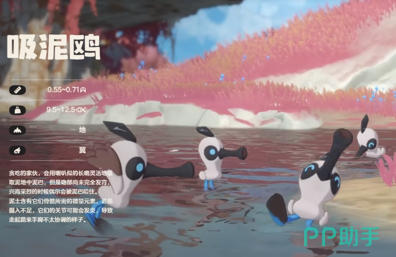 通过游戏里的宣传画面,玩家可以看到吸泥鸥会出现在水边,尤其是一些泥潭旁边,几个精灵角色会围在一起共同歌唱,之所以出现在这个地方,主要是因为精灵想要成长,就需要一定的微量元素,这些泥土里就有精灵所需的微量元素,精灵的周围总是环绕着大量的音符,这和游戏里绿耳松鼠的设定非常相似,玩家可以在后期尝试让这两个角色组队,
