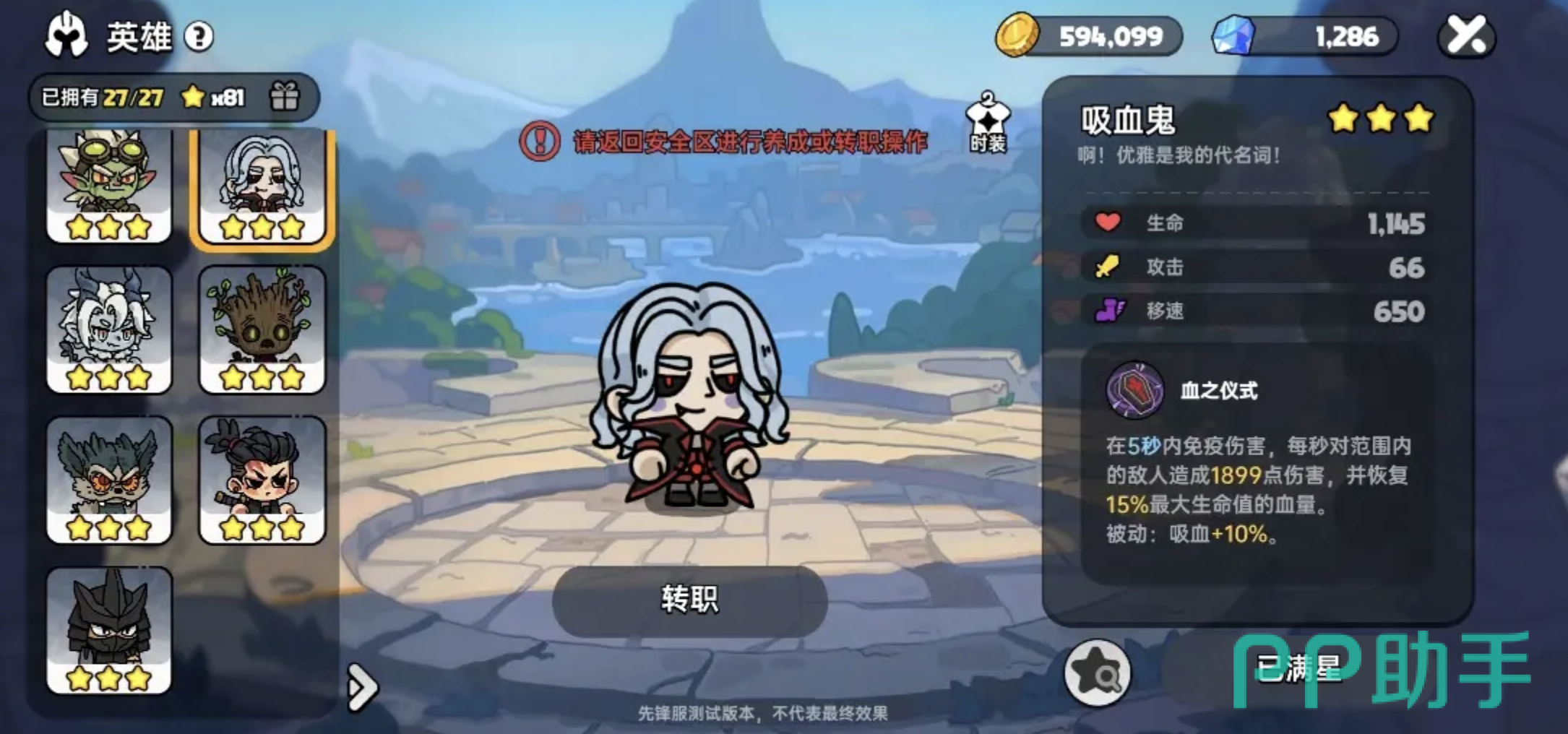 首先在准备阶段,角色的选择非常关键。推荐使用“吸血鬼”作为主要角色,原因在于其被动拥有10%的全能吸血,大招还能在关键时刻回血并减伤,对新手尤其友好。配装方面,建议尽快凑齐“魔龙套装”,该套装提供12%的BOSS伤害加成,能有效提升输出效率。