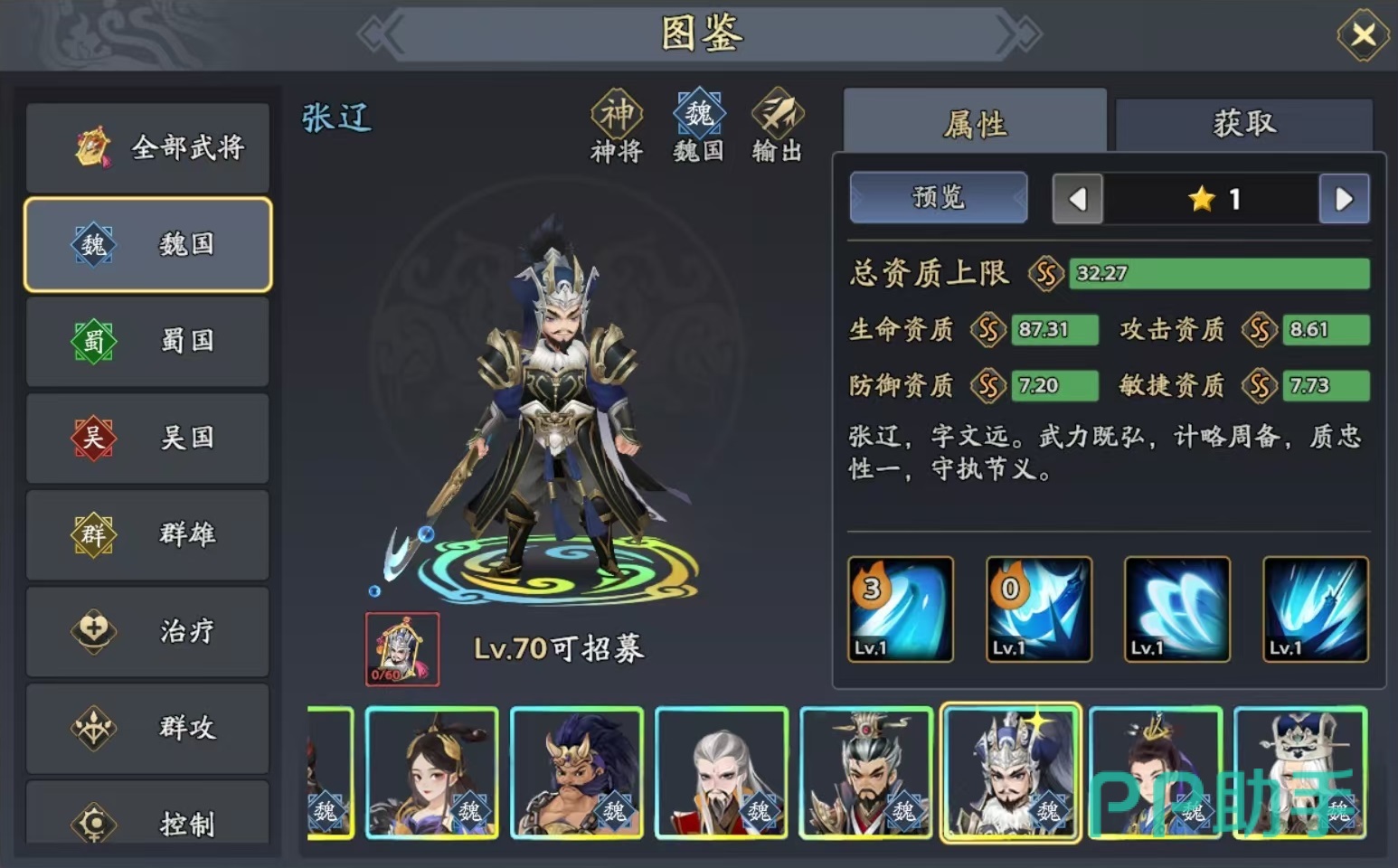 夏侯敦在防御方面绝对不用担心,阵容搭配主要以输出为主。小编选择的是荀彧和郭嘉这两个作为辅助,张辽和曹操作为输出,这样阵容就非常齐全了。曹操的群攻非常犀利,不仅有全体伤害,还有生命值回复效果,通过被动技能可以降低对方敏捷,并且附加更高的伤害。张辽擅长单体输出,在伤害之外,有恢复生命值效果。技能还有额外暴击率,打出暴击之后甚至可以直接秒杀残血目标。