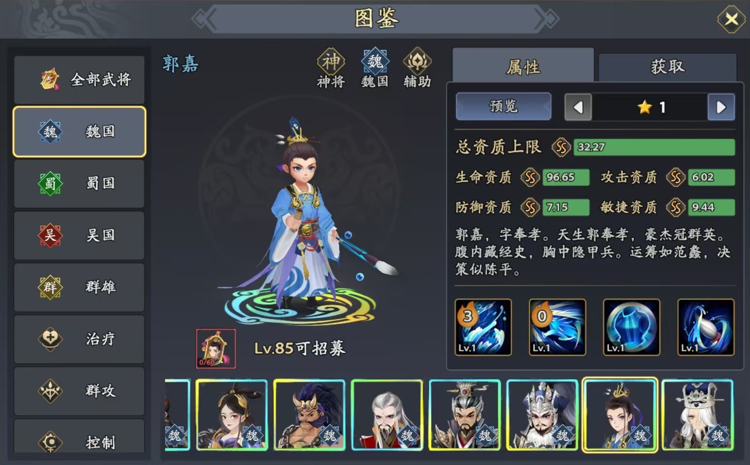 所以张郃走的就是中毒路线,为了让阵容更加均衡,另外的两个位置可以选择辅助或者是治疗。辅助可以选择司马懿,治疗可以选择郭嘉,这样一来整个阵容就很齐全了。郭嘉的技能带来生命恢复效果并且有几率清除目标身上的异常状态,这样也可以将张郃技能所带来的不利因素清除。