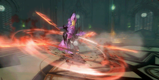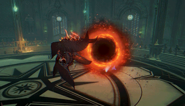 他的必杀技在点按的情况下,会召唤魔剑让自己进入到真魔人状态并形成火伤,期间自身得到霸体效果,长按会消耗所有的审判值形成输出,并释放“狂焰”,“狂焰”会跳跃起来后砸向地面。