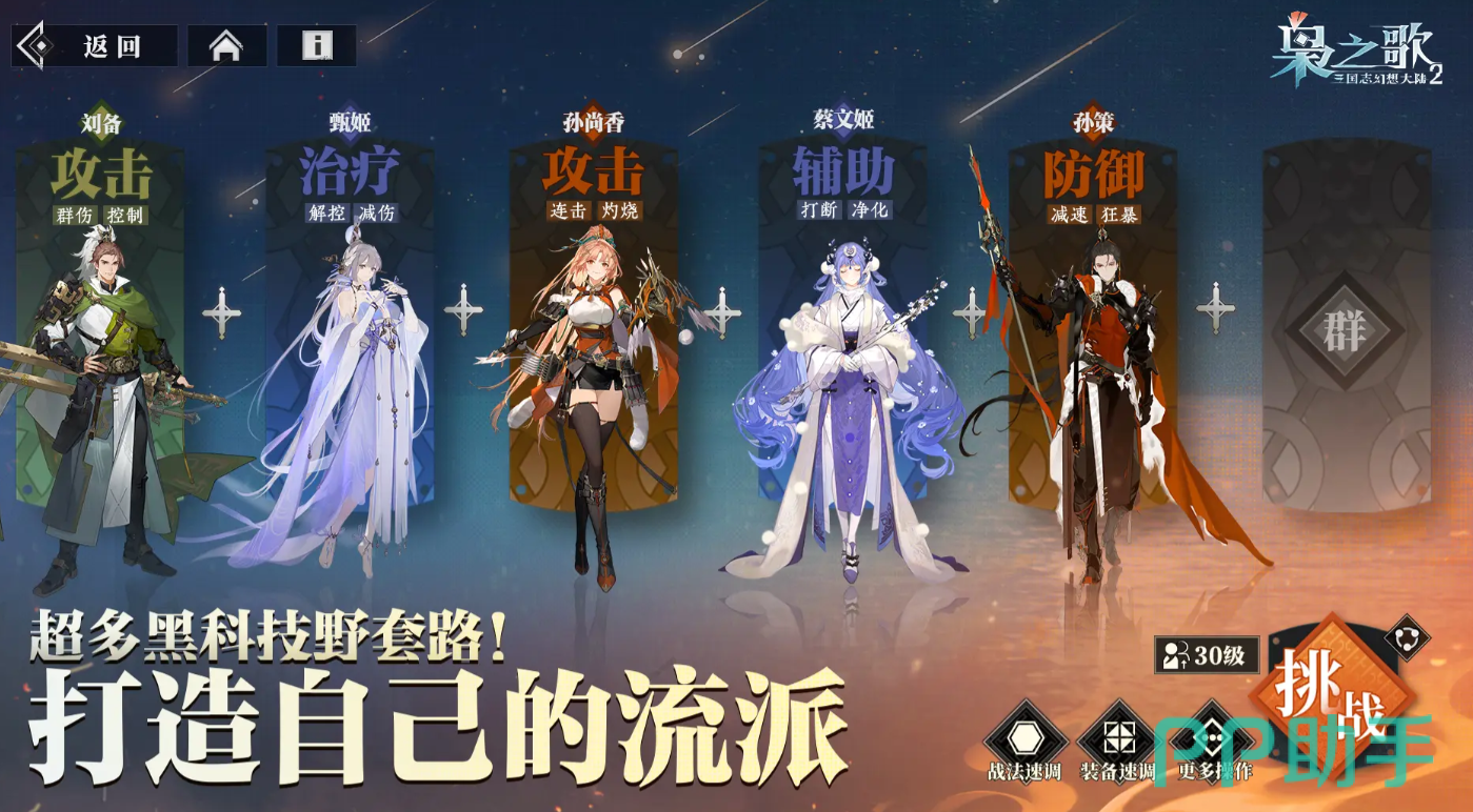 当前游戏当中总共有四个职能,它们分别代表的是攻击、治疗、辅助、防御,玩家需要按照关卡的需求,进行正确的阵容搭配才能够取胜。