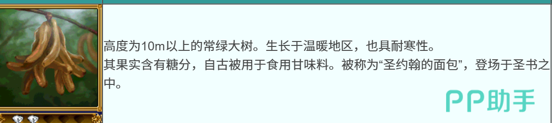 长豆角中的果实内含有一定的糖分,在游戏中通常是被当成是可使用的甘味剂,也被玩家们称之为圣约翰的面包。游戏中需要我们采集长豆角的任务名字叫做大家族的幸福。