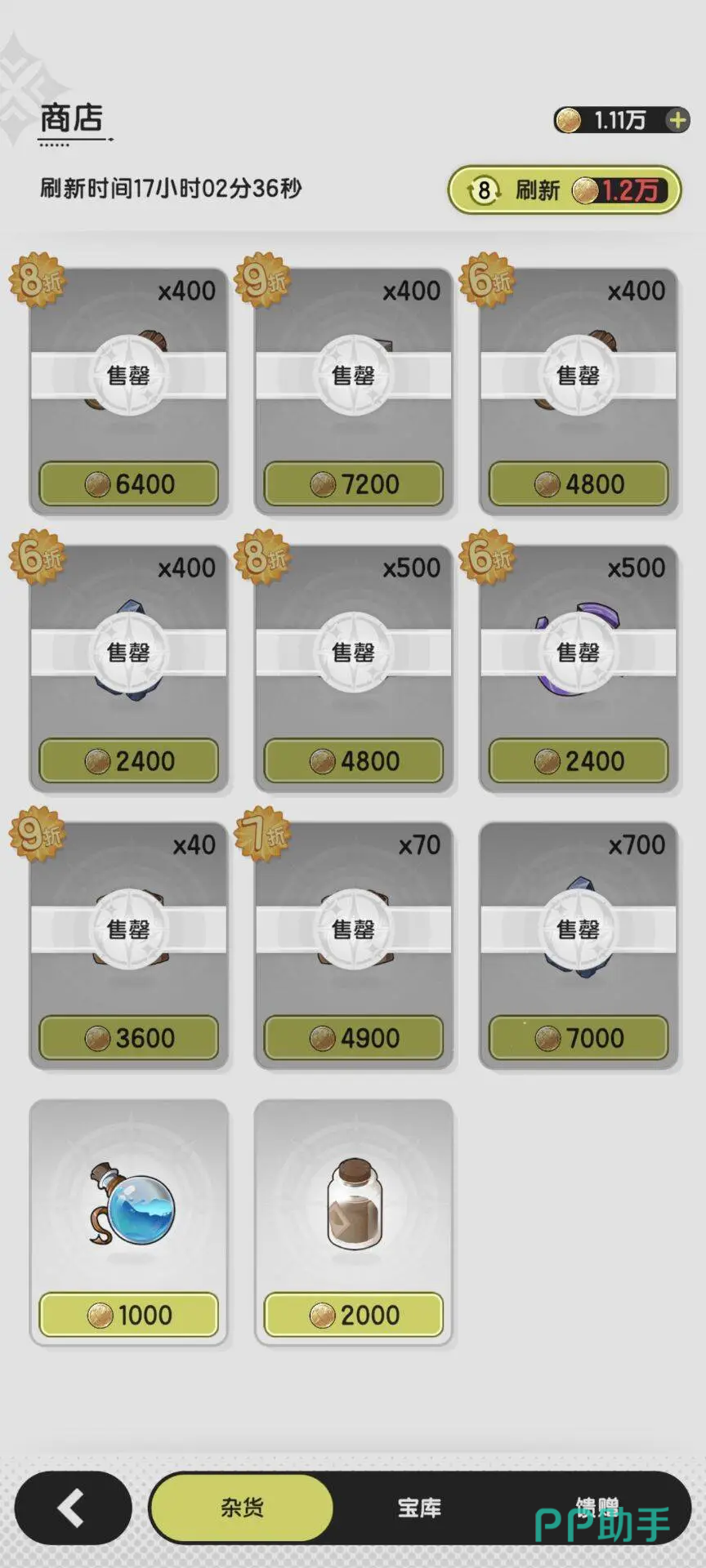 家园商店:主要说杂货这方面,平民玩家建议刷2次就够了,只要把其中的折扣购买了就可以了,金币不缺的情况下全买了也没事;宝库里面的优先去领取体力,其他打折的商品都建议买,如果有晨星,那每天都买满就可以。