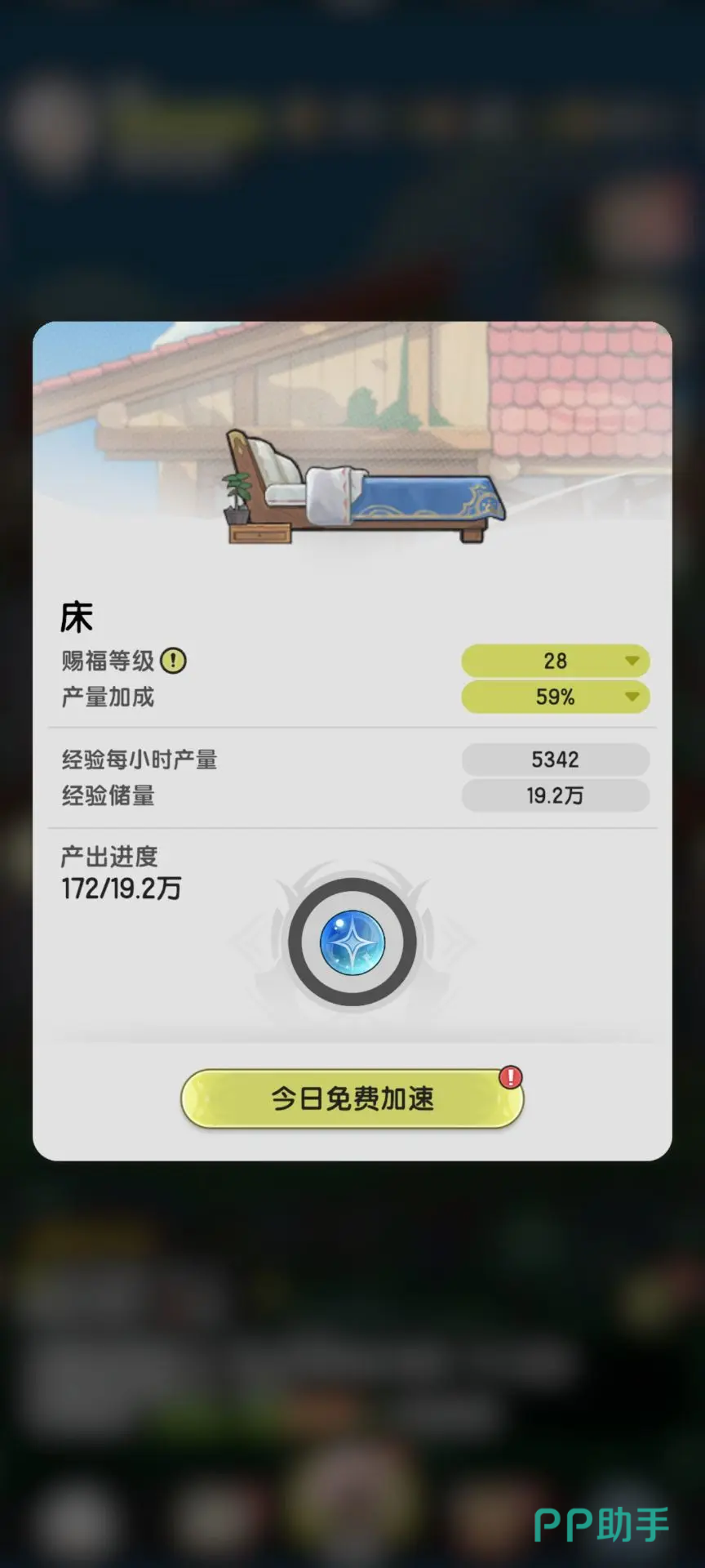 家园床,这是挂机经验获取的方法,要记住每天床的加速时间,一定要留着到将当日的地图开完,完成所有的任务,副本打完之后再去开启,这样鞥能让经验和资源的获取达到最大化,女神像开启之后,能增加产出的比例。
