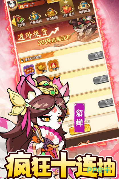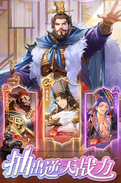 这款三国战争为主题的卡牌手游,让玩家作为一名阵营主公,通过各种操作完成重大战役,统一战乱时代。所有战斗型武将都可以通过任务或者奖励完成招募,根据不同颜色的品质区分属性高低,玩家可以利用有限的资源优先培养少数角色,完成前期的战斗策略。除了卡牌战斗系统,游戏也设计了美人后宫养成和PVP竞技等玩法,无论玩家喜爱什么模式都能体验到乐趣。