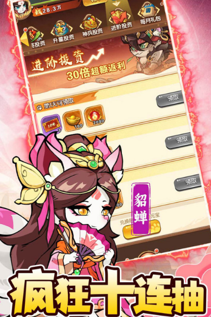 三国题材大多比较凝重与严肃,但本游戏采用了轻松的方式设计,让玩家通过Q萌的角色与挂机方式完成战斗。游戏对卡牌立绘的塑造均采用了多彩的迷你角色,丝毫不影响拥有还原历史的战斗技能,玩家可以通过敌人阵营特点,灵活调整自身的阵容搭配。除了主线战斗,玩家们也可以在比武场中激情竞技,在秘境中挑战boss获取大量升级资源,多种多样的卡牌玩法带来相当新鲜的体验。