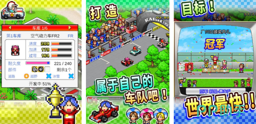 一般的赛车游戏都会比较偏向于写实风格,冲刺赛车物语,呈现的是一个比较童趣复古的像素赛车世界,在这个游戏世界里不再是单纯的车辆竞速,玩家还能成为车行的老板,招募赛车手,为车行参与各种竞速比拼,为了提升车辆的性能,玩家还可以修改零部件,这样就能以极佳的车辆状态,参与到速度的竞赛中。