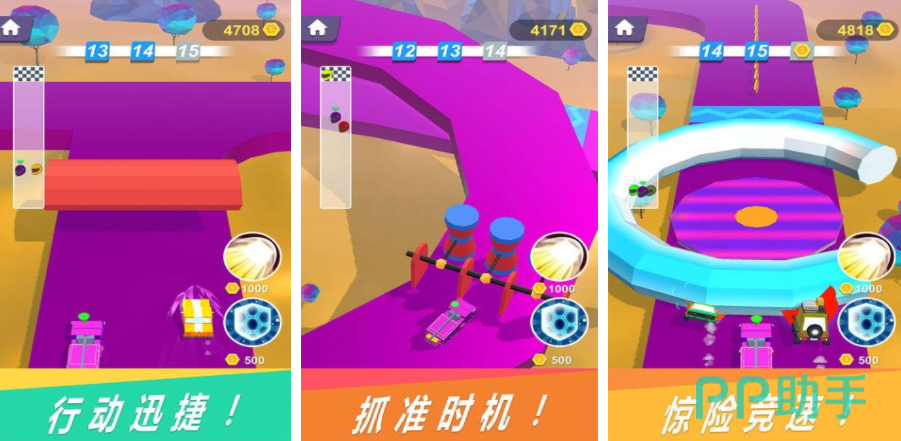 如果玩腻了常规的赛车,那就可以尝试一下障碍赛车,在这个游戏里会设定一个充满障碍的卡通赛道,玩家需要操控车辆,不断躲避这些障碍,到达终点,每一局都会有多名成员,要想获得胜利,就需要灵敏的操控车辆,并且保持全速行驶,赶快加入到游戏里,开启充满挑战的速度竞赛旅程吧。