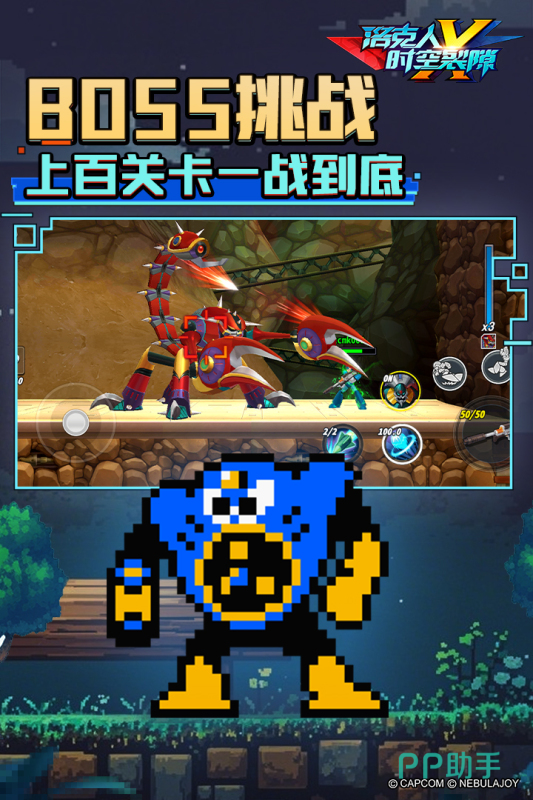 将复古像素美学与双IP世界观巧妙融合,构建出一个既怀旧又富有张力的机械都市战场。游戏在节奏紧凑的横版格斗基础上,注入JOJO独有的替身能力设定,使每一次技能释放都具备戏剧冲突与视觉冲击力。玩家操控洛克人穿梭于错综复杂的工业遗迹之中,面对的不仅是机械陷阱与变异敌人,更是随剧情推进不断强化的BOSS战挑战。