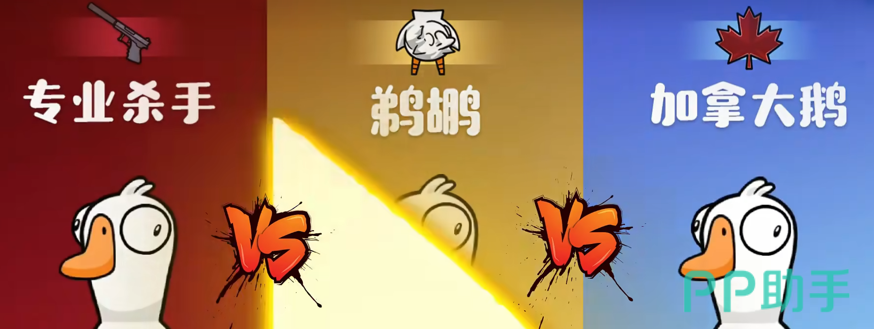游戏里面总共有着3阵营,这3个阵营分别为鹅,杀手和中立。先说鹅,它是游戏里面的好人阵营。我们需要在游戏中完成各种任务,还需要将游戏里面隐藏的鸭子给抓出来。