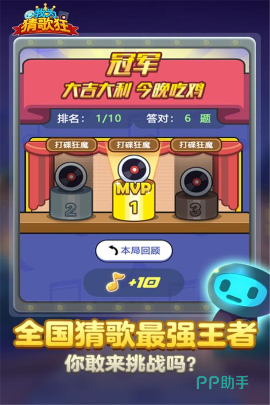 是一款卡通风格的音乐竞猜游戏,极富趣味性与挑战性。游戏内涵盖了大量的经典与热门歌曲,从老歌回忆到流行新曲,几乎囊括了各种音乐类型,玩家可以通过听旋律来猜出歌曲名。随着关卡的推进,歌曲的难度逐渐加大,不仅考验玩家的音乐记忆力,还激发了对各种曲风的探索欲。每一次正确猜歌,都能带来成就感,同时挑战高分榜,向好友展示自己的音乐实力。