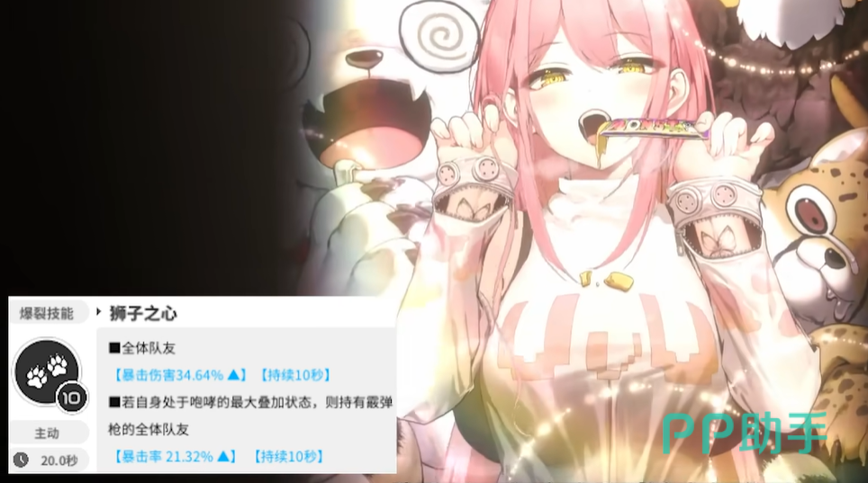 爆裂技能是直接提高自己的暴击伤害,这使得角色的单次霰弹伤害会非常恐怖,而且持有咆哮状态的时候,所有霰弹单位的暴击率再次提升百分之20%,在跟被动搭配的情况下,基本上能做到全程暴击,还能享受各种加成,可谓是既能输出还可以辅助。