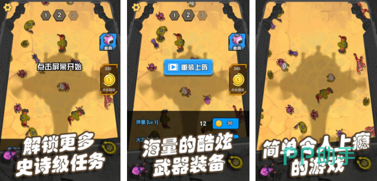 如果玩腻了传统的生存游戏,那就可以尝试一下末日打僵尸,游戏里设定了一个竖屏场景,面对大量的变异者,玩家需要利用加特林、散弹枪,以及其他的各种武器清扫僵尸,这种对战形式比较偏向于塔防设定,大家不需要在场上频繁移动,只需要根据实际的战斗情况,挑选不同的武器,向对面的僵尸不断射击即可。