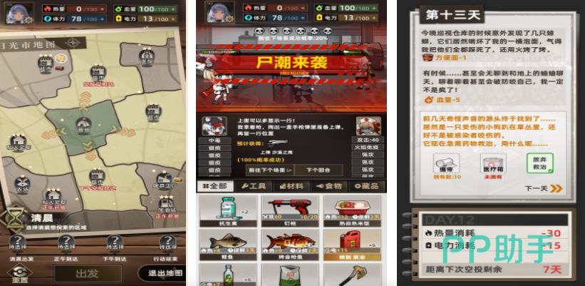 在末日求生这个世界里,核战争爆发,导致这里已经变成了一片废土,想要存活下去,就需要不断的搜集各个区域,获取场景里的物资,还需要不断的去获取各种装备,攻击出现的丧尸,里面每一天都会发生大量的事件,可以通过不断抉择改变这些事件的走向,从而让玩家能顺利存活下来。