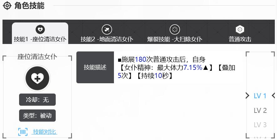 索达的核心机制在于被动技能“女仆精神”的叠加与维持。普通攻击累计180次后触发,最高叠加5层,每层提升自身13%最大体力。战斗中需优先保证索达持续射击,建议搭配攻速增益角色(如托比)缩短触发周期。主动技能“地面清洁”冷却12秒,可根据团队血量选择释放时机:未叠满被动时恢复全体3.23%体力,叠满后提升至12.71%,适合在BOSS释放AOE技能后急救。