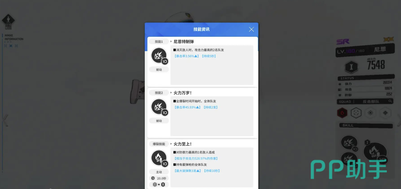 技能1和技能2通过被动效果不断提升零件伤害和优越代码攻击伤害,而主动技能则能够在关键时刻提供额外的伤害输出。所以在反击部队中,她能够凭借其出色的火力输出能力和支援能力,成为了不可或缺的一员。