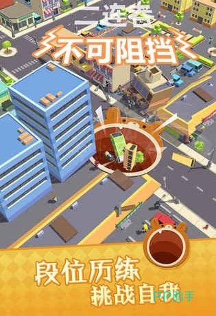 一款以“吞噬进化”为核心玩法的轻竞技手游,玩家将化身为一个初生的黑洞,在城市中不断吞噬物体,从路边的垃圾桶、街灯,一步步扩展到小车、楼房,直至吞下整片街区。体积的成长不仅带来视觉上的膨胀快感,也激发出玩家对策略路径与时机掌控的敏锐判断。游戏中,其他玩家控制的黑洞同样在地图上游荡,一场吞与被吞的较量悄然上演。对小者果断出击,面对更大的黑洞则需灵活绕行,形成紧张而充满变化的对抗节奏。