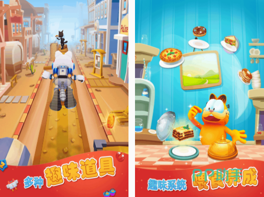 这款跑酷游戏是以动画片中,大家熟悉的加菲猫为主,作为官方正版授权的手游,在加菲猫形象上进行了高度还原,既真实又可爱。通过在屏幕上点击相应的按键以后,完成向左或者是向右的跳动,还融入了动作游戏所具备的特色,在炫酷的冒险旅途中,需要发挥每个加菲猫,在动作跑酷方面的实力,还增加了喂养系统,可以给加菲猫吃好吃的食物。