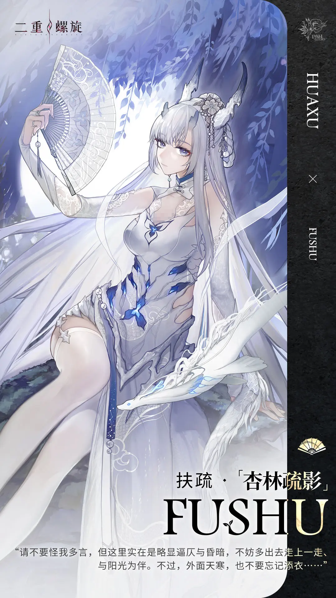扶疏是五星的水属性角色,她的背景设定和医者有关,而在定位方面也是偏向于辅助的,对于队伍起到回复的效果。1技能”提挚浮沉”,召唤1个”召唤物·云输”,”召唤物·云摘"最多能有2个同时存在,召唤物·云端:继承召唤者100%的属性值,每秒对四周最近的3个目标造成水属性伤害,每隔3秒,给周围的友方单位提供治疗,同时回复队友的神智。