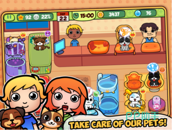 利用卡通的风格,为玩家渲染出了非常独特又可爱的画面,您需要化身成为宠物店的老板,每天会面对着各种各样的顾客,需要为顾客打理好他们的小宠物,这些小宠物的身体状况有可能会出现很多病情,但是您要善于观察,还要精心的照顾他们,让他们茁壮的成长。玩家通过完成任务之后就能获得丰厚的奖励,以此来升级宠物店。