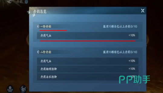 将丹药能角色就来带来永久提升,如果服用10颗白色以上的丹药,则可以激活一阶丹域,这能让丹药额外提升10%的气血,绿色和更高等级的丹药,自然也能带来更多的提升,此外大家也可以根据角色特性,蕴养不同的丹药,比方说能加物理攻击的破厄丹等。