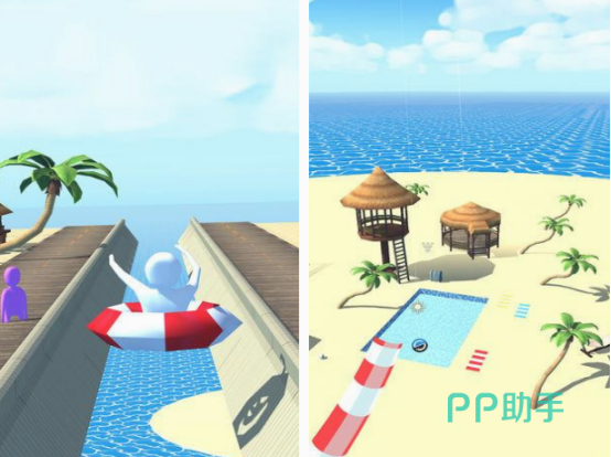 相对于驾驶车辆展开漂移的,这款会让玩家,置身于拥有沙滩以及阳光明媚的游戏环境中,以冲浪漂移这样的玩法为主,特别有趣的游戏中。主要就是在冲浪的时候,通过坐着游泳圈的方式,从高空的水上滑梯滑到尽头,看看哪个玩家可在展开冲浪漂移的时候,最快到达终点,就能成为第1名,仿佛玩家置身于其中一样,非常刺激。