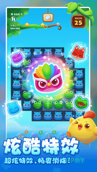 这款游戏就像藏在手机里的魔法糖果盒,轻轻一划,指尖就能唤醒满屏的Q萌小动物,河马憨态可掬,狐狸机灵眨眼,每一帧画面都萌到心坎里。三消规则里藏着千层套路,锁链困住的小动物要双消破局,冰块覆盖的关卡需连环爆破,还有随机刷新的闪电鸟、魔力鸟,特效碰撞时屏幕炸开烟花般的绚烂,成就感直接拉满。2000+关卡像闯关剧本杀,每一步都是新剧情,偶尔还能组队开黑,和闺蜜隔空battle谁先救出村长。