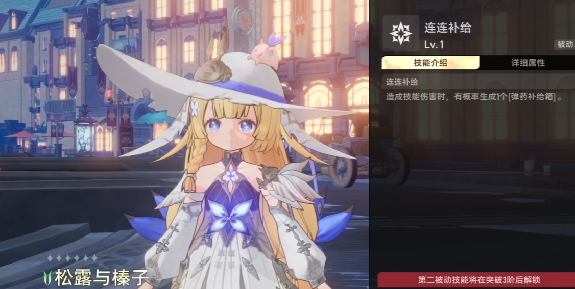 松露的4技能“连连补给”,这个技能效果是在造成伤害时有机会获得一个“弹药补给箱”。