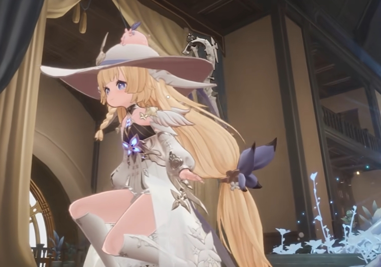 游戏中的松露小姐是一位治疗辅助型定位的角色,她有一头金黄色的长发,再加上骑着一头圆润的小粉猪,给人一种俏皮可爱的邻家小妹的感觉。她的初始服装是穿搭一件蕾丝花边的罩衫,奔跑起来的时候裙边的花朵还会摆动,更新角色的俏皮。