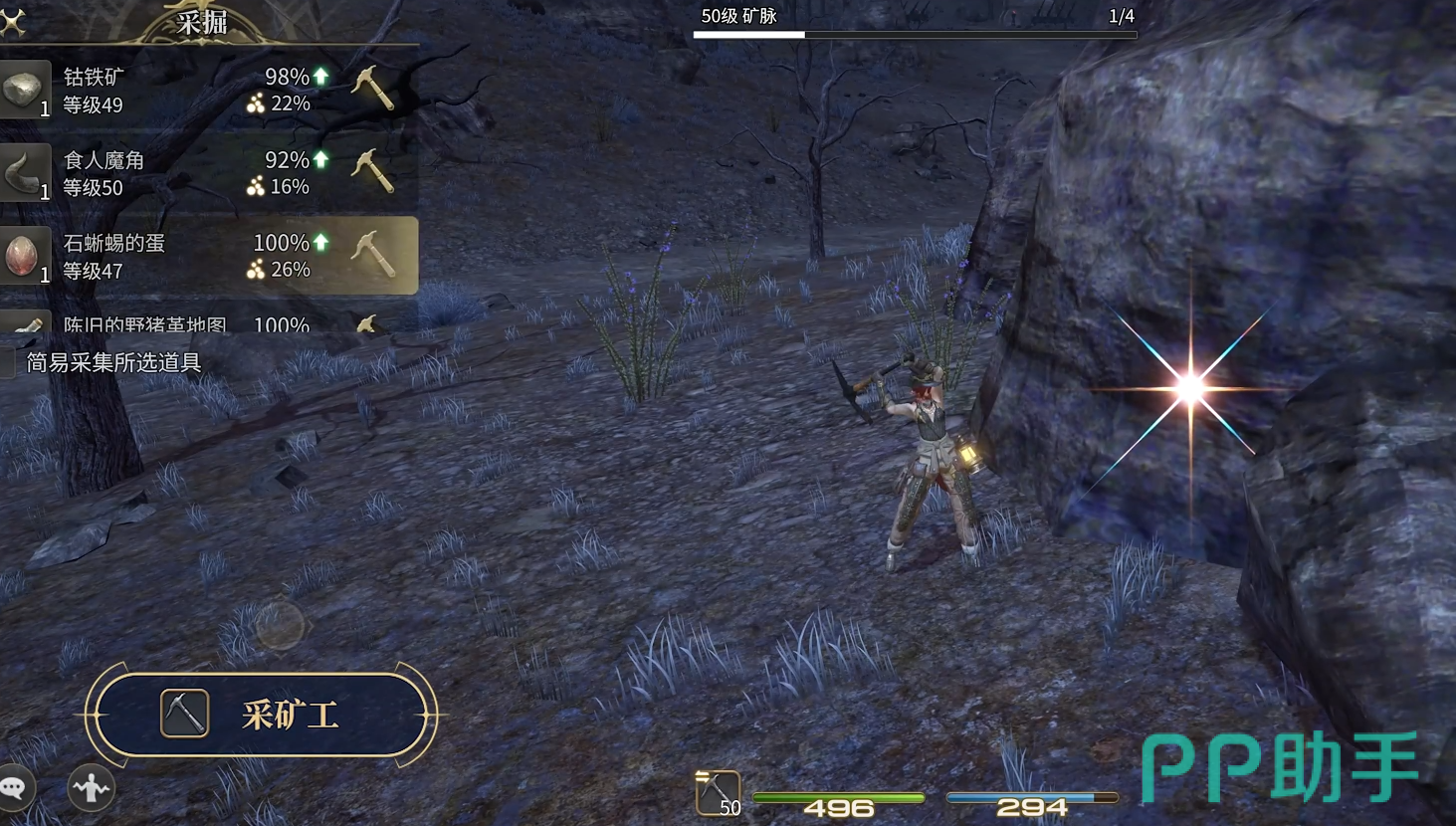 采矿工的技能体系围绕效率提升与操作优化构建,核心技能包括富矿的馈赠,在空岛练级场景中,玩家勾选简易采集所选道具选项后,点击该技能并选定目标物品图标,即可实现自动化采集,大幅减少重复操作成本,增加挖掘次数技能可突破单次采集的数量上限,对普通矿点使用后,每次挖掘可额外获取矿石。
