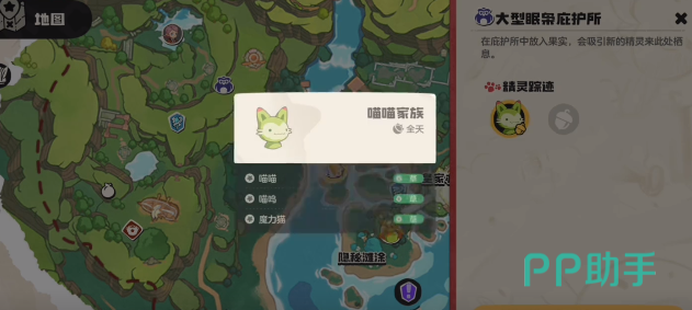 在主线剧情中,玩家本来就可以拿到一个专属的果实,例如这只喵喵就是绿色的,如果把果实直接放在庇护所,那么就能够达到迅速吸引边上喵喵的作用。在此时庇护所的附近也有可能会出现喵喵,甚至周围还会出现很多的喵喵,接下来的抓捕方法就是如出一辙的。