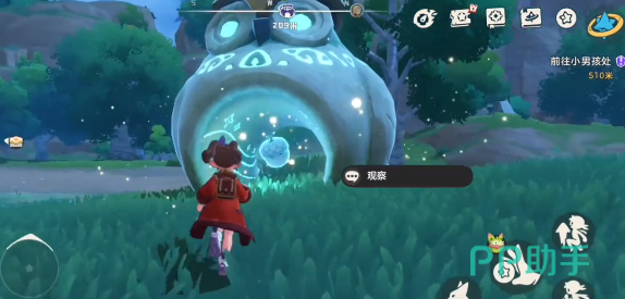 玩家可以来到大世界,然后马上找一个庇护所。这一个庇护所就是像眼前这样的猫头鹰石像,玩家只需要去完成交互即可。在主线剧情中,玩家马上就可以得到新手阶段所可以挑选的精灵,这也就是猫猫。