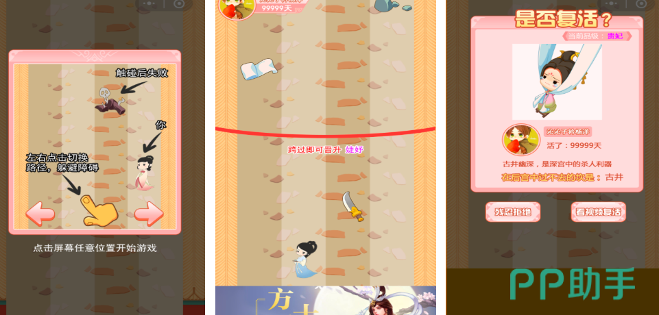 看似风光的后宫中也会遭遇到各种杀机危险,玩家们将会扮演一名普通的妃嫔,在各种危机事件与生死存亡中努力求得生机。游戏采用小游戏闯关与解谜挑战的玩法,只有选择完成限时的解谜挑战任务才能生存,一旦错误就会遭到诛杀。小游戏挑战很丰富,如果通关还会解锁额外随机事件剧情,从限时闯关到解谜玩法,都能给玩家带来别样的趣味。