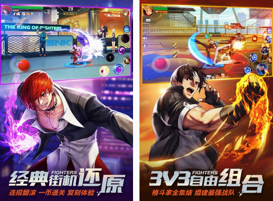 这是高度还原,经典街机游戏特色内容的格斗手游,除了玩家能够看到大家熟悉的拳皇人物,更能够实现连招翻滚,以及一币通关这样的游戏体验。在玩的时候,既可通过实时公平竞技的方式,来进行争霸,看一看谁的格斗实力更强,还有3v3自由组合,可以让玩家集结优秀的格斗家,展现出最强战队所具备的实力。
