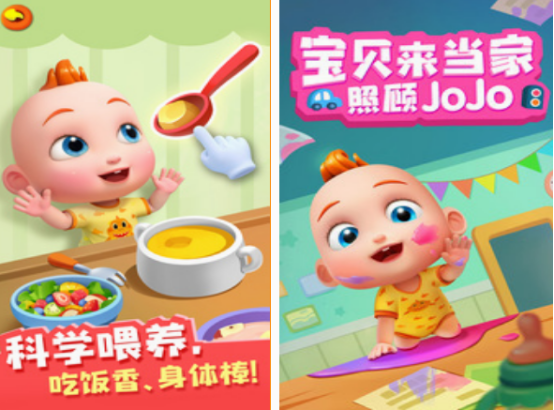 这款照顾小宝宝的游戏。主要就是以可爱的JoJo这个角色为主,它不仅在儿童绘本甚至是动画片中深受儿童喜欢,长相也是很独特的、当玩家进入了这款游戏以后,就看到了婴儿状态的角色,为了把宝宝照顾好,除了要做好卫生的准备,可以给他洗澡将细菌赶走,同时还支持与里面的角色做各种各样的游戏,包括搭积木或者是玩玩具火车,制作美食等。